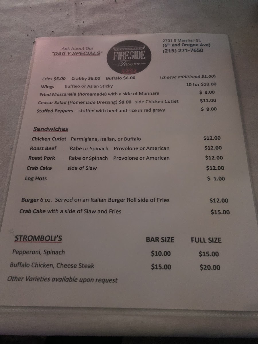Welcome to Fireside Tavern, a quintessential South Philly bar that exudes warmth and community spirit. Nestled at 2701 S Marshall St, Philadelphia, this cash-only establishment (with an ATM on-site) is perfect for relaxing and unwinding.